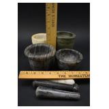 Figural Powder Jar, Hand Painted 2 Section Vase and Ewer |