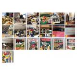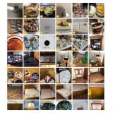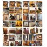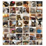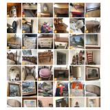 * Wooden sailing ships * Vintage wooden dining table * Vintage & Antique chairs * Vintage school desk * Vintage child's rocking chair * Antique ladder chairs, red * Pie-crust vintage coffee table with leather top; spins! * Vintage 2-tier end tables; leather inlay tops * Model ship collection * Entertainment cabinet * AREA rugs * 4 Flat screen TVs; various sizes * Vintage stools from the 40's * Original signed artwork, oils * Antique cupboard * PAULA DEEN cookware set * Cast iron skillets, pots * Pink depression glass * Vintage china * large area rugs * Oak secretary desk * Vintage side table * Vintage NEW HOME sewing machine/cabinet * Full size bed, dresser * Comic books (3 in-tact; stack of others have pages torn out) * Carved plaster head shelves * Knight on horse statue * vintage art * vintage wooden card table * vintage school desk * Dressers, lamps * King size bed, headboard, mattress & box springs * R. Luster sailboat oil jpainting * Queen size bed, dresser * outdoor resin chairs * Rubbermaid storage cabinet * Rubbermaid storage bench * linens * jewelry * tablecloths, napkins, placemats * Vintage books * set of Lefton Fruit Fantasia canisters, butter dish, sugar/creamer, salt/pepper