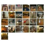 A little bit of everything - ALL MUST GO! * Leather recliner * Etergere shelving * vintage lamps * fishing reels & lures * Tools * REINDEER collection * jewelry * watches * bocce balls * cameras * mink stole * leather jackets * Vintage Northwestern swinnimg pin * Lots of VFW pins * Vintage side chairs * table/lamp * Wall clock with chimes * Wooden black media stand * Hand painted large vases/planters * Round glass coffee table with wooden base * Navy blue patterned sofa & loveseat * Hutch/buffet * Collectibles * Wedgewood plates * Crystal stemware * Silver plated serving pieces * China * Dining room table with 4 chairs * Vintage Butcher Block kitchen table & chairs, chrome legs * various kitchen and pantry items * microwave * decor * vintage dresser & mirror * twin bed with trundle * shell lamp * vintage artwork * vintage games * Costume jewelry * Books * desk * Wooden armoire * Vintage Long dresser with 2 mirrors * Vintage sewing machine & cabinet