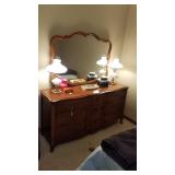 Household items Furniture Paul Bunyan Collection by Singer circa 1970s. Dining table with two leaves, six chairs (SOLD). China cabinet (SOLD). Buffet/Server (AVAILABLE). Rocking Chair (AVAILABLE). Full size bed with matching 9-drawer dresser and mirror by Bassett. Queen size bed with matching dresser and mirror by Singer. Dresser and mirror with matching nightstand by Hamilton. Taupe leather rocker recliner with steel construction Art - numbered and signed prints by Louise Dunavant, other artists Decor - dozens of vases, plants, candles and other decor Dishes - china, casual, baking, antique, corelle, Corningware, Pyrex, Anchor Hocking Tools Collectibles |