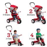 • Grows with your child - 4 ways to ride: Infant trike, push trike, learn-to-ride-trike and classic trike • Rugged air tires and removable canopy for UV protection • Secure 3 point harness and high back seat. Removable safety tray with cup holder • Adult steer & stroll adjustable push handle • Pedals become footrests for early stages • Product Dimensions = 30.71" x 21.65" x 41.34" • Weight Capacity = 49 lbs • Age = 9 months-5 years.