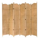 MyGift Freestanding Bamboo Woven Textured 6-Panel Room Divider Folding Privacy Screen, Beige
