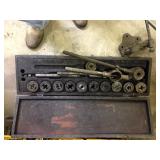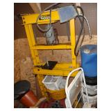 TOOLS, PARTS AND MISC.: New Parts of all Types of Small Engines Mowers and Weed eaters, 30 Gallon Fuel Caddy,120 Ball Bearing Door Slides, 20 Ton Press, Large Tap & Die Set, Dial Indicator, Torch Tanks, Drill Impact Tips (new), Drill Bits (new), Battery Charger, Pipe Bender, Turbo Heater, Revo Core Drill, Lg. Ratchet Set, Air Impact, Porta Power, Plastic Bins, 12 Ton Press, Bench Grinder, Chain Saw Sharpener & Wheels, Sand Blasters, Rivet Spinner, Hydraulic Lift, Motor Cycle Lift, Jet Lathe, Lathe Tools, Plastic Welder, Portable Air Tank, Large Scrap Pile,