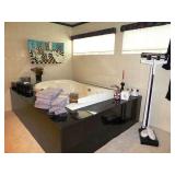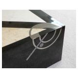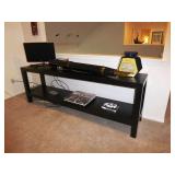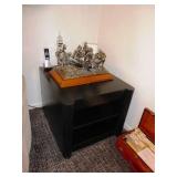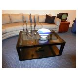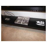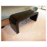 - CUSTOM BLACK WOODGRAIN FURNITURE – 2 SIDE TABLES, 8’ TWO-TIER CONSOLE TABLE, PARSON’S STYLE SIDE TABLE, & TWO-TIER COFFEE TABLE W/ INSET GLASS TOP