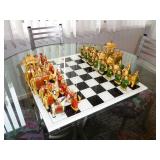 - ALUMINUM GAMES TABLE W/ GLASS TOP & 4 CHAIRS
