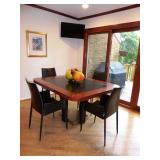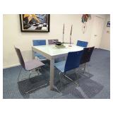 - ITALIAN ALUMINUM/FROSTED GLASS EXTENSION DINING TABLE W/ 6 BENTWOOD CHAIRS