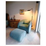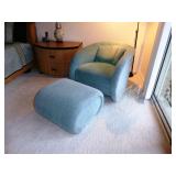 - BLUE ULTRASUEDE SWIVEL LOUNGE CHAIR