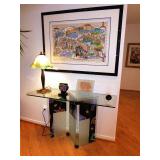 - ARTIST-MADE PAINTED GLASS CONSOLE TABLE