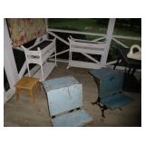 Fine Home Furnishings: Victorian carved settee and chair, antique blanket chest, antique secretary desk, antique dressers, camelback sofa, wing chairs and ottomans, hanging curio cabinet, vanity w/ mirror, twin upholstered headboards, Queen Anne writing desk, double cannonball bed, oriental rugs, antique wicker sofa w/ side tables, lamps incl. porcelain, artwork incl. originals by Carol Mendenhall, bar stools, upholstered rocking chairs, drop leaf dining table w/ 5 chairs, antique school desks, doll house and accessories, Pearl grandmother clock, pie crust top pedestal table, Duncan Phyfe style drum table, outdoor furniture, picnic table, bar stools, butler’s table, large collection of books incl. art books, cookbooks, classics and coffee table, antique oak clock, china incl. Noritake “Grasmere” and “Ramona”, R&A “Narina” and Gorham “Breckenridge”, stemware incl. Fostoria, S. Kirk & Sons sterling silver flatware, Gorham silver plate flatware and silver plate serving pieces, hand painted china, cut glass, Depression glass, crystal, pewter, women’s clothing incl. Eileen Fisher, Talbots, Ralph Lauren and Ellen Tracy, purses incl. D&B and Cole Haan, furs, coats incl. leather, Burberry’s and Talbots, jewelry incl. sterling, vintage and watches incl. Bulova, Elgin and Seiko, baskets, Husqvarna Viking Platinum 735 sewing machine, sewing supplies and notions, yard incl. acrylic and wool, linens, LG DVD/VHS player, Insignia HD radio, DVD’s, CD’s, storage containers, large selection of art supplies incl. art books, easel, canvas incl. linen, paper incl. watercolor and rice, paints incl. acrylic and oils, pastels, brushes, storage racks, sponges, paper cutter, beeswax, mats, containers, palettes, colored pencils, markers, inks, photo albums, Conrad monotype press w/ accessories, artist display racks incl. lights, picnic baskets, Voyager Diamondback bike, storage shelves, Craftsman wet/dry vac, croquet sets, holiday decorations and so many more treasures!