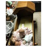 Inventory List If you want Dolls this is a sale for You at wonderful prices !!!!!! Vintage Collectible China Mid Century Dishware Cards Grandfather Clock Collectibles White Chair And Sofa Elephants Mcoy Vase Cooper Cars Round Table Purses Racing items Bronco Pennant Hats Bibles Wall Art Small Kitchen Appliances Dishes Cookware Bakeware Jewelry Boxes Jewelry Watches Washer and Dryer Linens Oreck Vacuum Dirt Devil 1950’s Chester drawers and Dresser with full size bed Oil Lamps Vintage Items Sewing Machine and Notions Scarfs and Gloves Mirror Dresser with nightstands and Full Size Bed Serta Mattress adjustable Swing TV Metal Cars Round Table Loads of Dolls and Accessories Bookcases and cabinets Trunks Trains Doll Beds Doll High chairs Accessories Collectible type cars Vintage Art with wagon Vintage Sled Books Beer Stine Ladders Fiesta Ware Assortment Nuts and Bolts Tool Box Bath Accessories Maps Marbles Mantel Clocks Media Cabinet End Table Vintage Formica Top Table Llardo Glass Art Look Magazine