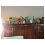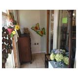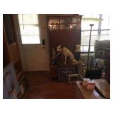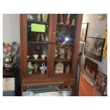 FINE ANTIQUE & WHIMSICAL FURNITURE TO INCLUDE: Victorian ornately carved cherry ladies dressing table. TOC walnut hall tree. Three double glass door antique display cabinets. Cherry corner cupboard.