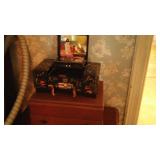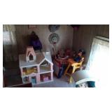 · ANTIQUES/COLLECTIBLES— Over 20 Antique Clocks, Spinet Piano, Organ, Antique Corner Cupboard, Nice Glass & China including Carnival Glass, Autumn Leaf China, & Ruby, Books, Crocks, Trunks, Old Typewriters, Old Student Desks, Pedestal Sink, Train Set, Hess Trucks, Dolls, Beenie Babies, Dresser, Bed, Toys, Rocking Horse, cameras and more.
