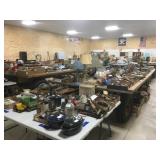 Tools: Several Flats of Quality Hand Tools and Mechanic Tools, Air Compressor, 5ga Gas Cans, Radial Arm Saw, Arc Welder, Concrete Finisher, Aluminum Ladder, Commercial Grade Steel Shelving, Large Parts Bins, Pair Like New 245/75 R17 Tires, Pair Like New 265/75 R16 Tires, Drill Press.