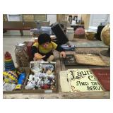 Antiques/Collectibles: Antique Wrenches, Enamelware, Art Pottery, Art Glass, Blue Canning Jars, Vintage Kitchen Utensils, Oil Lamps, Old Bottles, Wood Boxes, Vintage Toys, Advertising Items, Old Cameras, Disney Cookie Jars, Large Traffic Light, Wood Muck Rake.