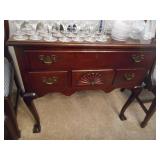 Dining room furniture including dining table & four chairs, cabinets, small tables & cabinets