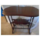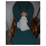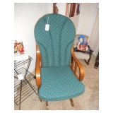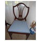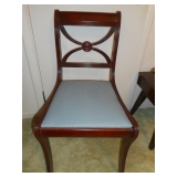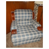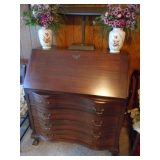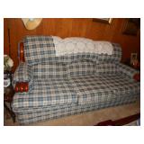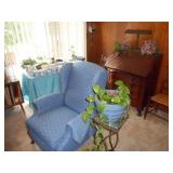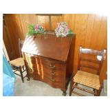 Family room furniture including fabric couch & matching chair, antique secretary desk, antique chairs