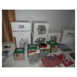 Holiday items including Dickens Christmas Village houses