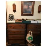 and chests, Fenton fairy style lamps, King size bed, waterbed frame, cedar chest w/brass