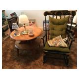 “AM” composite doll, rocking chairs, cute Tell City corner china cabinet, John Wayne