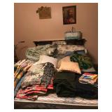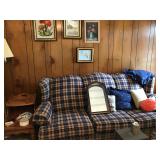 style sofa, very nicely cared for, oversized faux leather recliner, bed/bath/kitchen linens, tv’s,