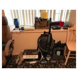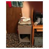 rolling file drawer, computer desk, older computer, Kirby vacuum system, vintage Motorola