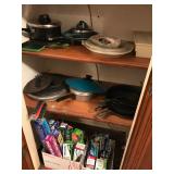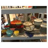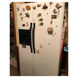 Frigidaire side/side fridge, boxes of kitchen ware, cook ware, bake ware, Blue Danube