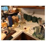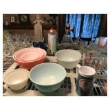 Oilers items, Retro kitchen ware, vintage glass ware, serving bowls and plates, milk glass,