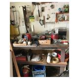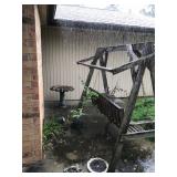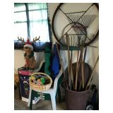 porch swing,(needs some loving’), yard tools, small selection of wrenches, etc., cleaning