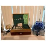 mantel clock, Cutco knife set, in block, sterling items, vintage U.S. Naval uniform, country