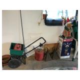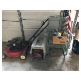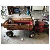 supplies, Radio Flyer wagon, boxes of plastic ware, 20” Murray push mower, very nice