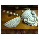 dinner ware, 1847 Rogers silverplate flatware, vintage coffee urn, cups/saucers, indoor