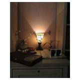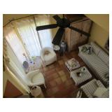 We picked up a sweet sale! Well cared for furnishings; nice living room furnishings, great office desk, bookcases, master bedroom suite. Glass top dining set, very nice! Two lighted display cabinets Named artwork, signed pottery art/decor, Waterford items, gorgeous silver plate tea set. Turntable, tuner, speakers. Leather bound books, Lots of great cookbooks. Great kitchen items. All this and much more.. Don't miss this one, you won't be disappointed!