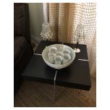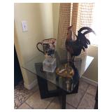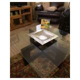 Glass top with wood base coffee table and matching end table
