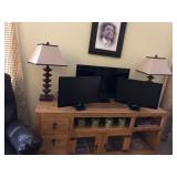 Like new pine flat screen TV stand with drawers and storage