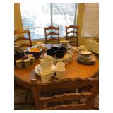 Round wood dining table with 6 chairs, a real rustic look