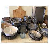 Pots, pans and baking items, all like new and good brand names