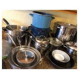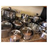 Pots and pans by All Clad, Calphalon, Emeril, Presto , Lodge