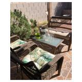 Patio set, two chairs, love seat and coffee table, very nice condition