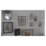 TONS OF ARTWORK AND OLD BUBBLE FRAMES AND PICTURES
