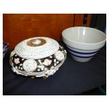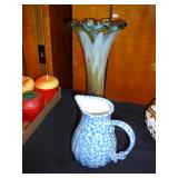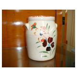 1:50 - Rare Find! John Burger, Rochester NY, 1 Gallon Glazed Stoneware Pitcher w/ Brilliant Blue Floral Decoration