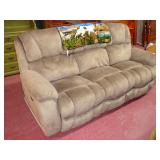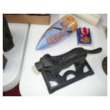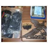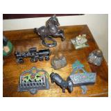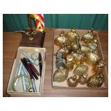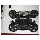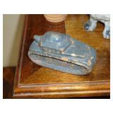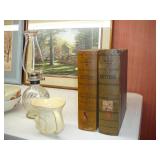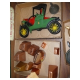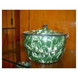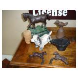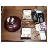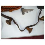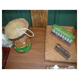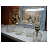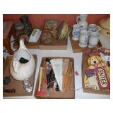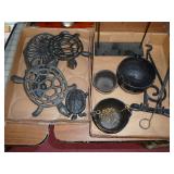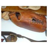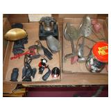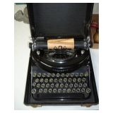 1:00 -(there bouts) Main Hall- Collectibles / Household Furnishings - Columbia Grafonola NO. B30226 A.M. Graphophone - Several Strawberry and Peach Hazel Atlas Milk Glass Jam Jars - Enamel Pots w/Lids - Mid Century Remington Noiseless Portable Typewriter - Several Lots OF Bells: Sleigh, Cattle, Sheep, Cast Iron and lots more, Several Cast Iron Pieces: Animals, Small Kettles, Frying Pans, Trains, Coin Banks, Coal Bucket and More!! - Ship Wheel Compass - Myers Hay Trolley - Turkey Decanters - Vintage Kenmore Fan Blue Canning Jars w/Lids - Vintage Macgregor "Gold Smith" Baseball Glove - Household: Crock Lamps - Floor Lamps - 60" LG Flatscreen TV w/Remote and Wall Bracket - Acer Computer Tower w/Keyboard - Dell Laptop - Office Supplies - Candles - Linens - Hanson 25 LB. Scale - Playing Cards - Aladdins Pump A Drink - Sewing Ephemera - Framed Pictures - Baskets - Gloves - Dresser Lamps - China Sets - Wooden fishing lures: Heddon Meadow Mouse, Jitterbugs, C.C. Bait Co. River Scamp, Lazy Ike 3, Oreno Teas & others - and Much More!!!