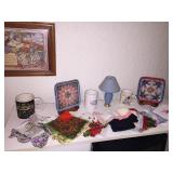 Items for sale will include a large lighted Display cabinet, Rattan dining set, several Chests of drawers and utility cabinets, Bookcases, Vintage arm chairs, Duncan Phyfe style drop leaf side table with drawer, Floor and table lamps, Wall decor, Bernina sewing machine in cabinet with hard shell carrying case, Rattan day bed, Vintage Rite dress form, Books, CDs and cassettes, Cookbooks, Small kitchen appliances, Noritake china ‘Dulsy’, Quilting books-quilt fabric fat quarters and yardage-embroidery hoops and quilting frames-new pillow forms-sewing thread and notions, Several electric irons and an old wooden ironing board, Scrap booking supplies, Large group of men’s ties for crafting or wear, Lighthouse decor, Shoe collector decor, Snowman collection, Halloween decor, Many picture frames, Lots of storage jars, Plant stands and greenery, Bird houses, Betty Boop doll, Porcelain clown figurines, Howard Miller 1997 Santa figurine Making Toys for Good girls and Boys, Ronald A Lee clown figurines, Clown collector plates, Quilted throws, Totes, Sunbeam wall or floor fan, Vintage hankies, Demitasse cups and saucers, Large jewelry box, Costume jewelry, Antique Elgin pocket watch-working, Shaefer pen and pencil set, Desktop gemstone globe with clock, Games, Lotions and potions, Ficus tree, Baskets, Outdoor chairs, Wooden ladder, Miscellaneous, All priced to sell! |