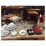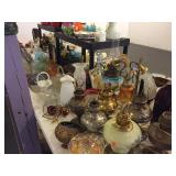 A Sunday sale full of Estate Smalls to include large sum vintage, newer and retro Costume Jewelry, Sterling Silver, etc., Antique Chinese items include Jewelry, Silver Plate, Sets China, Crystal Stemware, Art including Oil Paintings and Prints, 6 boxes Records, 4 boxes full Comics, Collector's Plates, Collection Fenton & Other Glass Shoes, 14 shelves full Glass Shades including Gone with the Wind, Blue and White, Primitives, Royal Doulton, Oil Lamps, Antique Washbowl & Pitchers, Brides Baskets, Vaseline Glass, Epergne, Dozen old & New Clocks, Fossils, Games, old Tins, Models, old License Plates, old Luggage, large sum of decorative China & Glassware, Box Lots, Estate Items & much more!