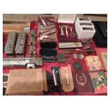 Pre war Lionel 616 Flying Yankee train set Sterling Silver military pins & medals WW2 military uniforms Vintage cowboy boots Gold & Silver Jewelry Sterling silver cuff links Large amount of Masonic items Case pocket knives Antique steamer trunk Vintage cameras & accessories Old military photos & slides Vintage Penn Saltwater reels Vintage fishing lures & tackle boxes Gas chainsaw Victrola record player Huge collection of vintage lp's / records Massive amount of antique, vintage & newer books Matching Oak dining table & side board Fine China Mid Century modern bedroom suites Maple Bedroom suites Antique wood filing cabinets Metal fileing cabinets Executive desk Pocket watches Military patches Antique portable Remington typewriter Wood carved sculptures Italian alabaster carvings Large amount of tools Antique library table Antique drop front secretary Mens Clothing Mens Shoes Leather upholstered chairs Accent tables Oil paintings Signed & numbered artwork Vintage military field gear & footlockers Long bows Kitchen island Cutco cutlery Crystal Colored glass Presentation bowie knife Stetson hats Computer Vintage Asian collectibles Microfiche machine Quality decor Vaseline glass Kitchenwares Cookware Linens Household chemicals Building materials Electric pole chainsaw Firewood racks Vintage fly fishing equipment Medical supplies Aviation collectibles Beer stein collection Blue print cabinets Foot lockers Office furniture Vintage retro leather chair Office supplies Leather recliner Several book shelves Newer side by side refrigerator Washer & Dryer Oreck vacuum cleaner Drafting tools & supplies Rolling tool box Metal storage cabinets Mason sword Formal serving wares Ronald Reagan autograph Collectible documents Black & white photos Tin type photo Collectors chess sets Vintage projectors Rods & reels Vintage boy scout gear Vintage Army field gear WW2 newspapers Original JFK Assassination newspapers Tons of vintage, retro, and antique furniture Notable artwork Power tools Hand tools Limoges Artisit's easels Military foot lockers Vintage gun magazines & books Huge antique china hutch w/stained glass doors Collectors plates Vintage Japanese Mermaid bamboo fly rod w/ case Antique portable remington typewriter Stetson hats Walking canes & sticks Vintage lighted globe Vintage lamps & lighting WW1 dog tags WW1 military training manuals Card tables & chairs