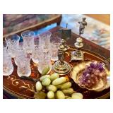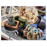 Carlier, whimsical French watercolor by Etienne Ret, period books, objets de'art, collection of French dolls, wooden boxes, beaded evening bags, souvenir, antique, boxes and vanity items, European and export porcelains, blue and white Staffordshire, silver flatware and serving pieces, vintage kitchen items, pottery, linens, costume jewelry, tea party trinkets of merit.