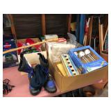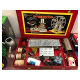 Fun collectables......Rare Vintage Toy Gilbert Erector set, Circa 1950's Lionel O gauge train and track, just in time for the holidays, vintage red Avon glass, full set of Noritake dishes, service for 18, Silver Plated silverware, very nice dining room table, complete with two leaves and seating for six, couch, end tables, very nice wood frame headboard and backboard queen bed frame, full set of motorcycle leathers, vintage enameled red kitchen table and chairs, ladies clothing, office desk and shelves, set of three Camphor wood trunks, VHS TV, books, fishing poles, 550 pieces of Monet jewelry, antique glassware, (SEE PHOTOS), various wall art, vintage copper cookware, Fitz & Floyd cookie jars, lamps, kitchen items, Play Station and 100 Play Station games, Xbox games, LP Albums, music cd's, Kenmore sewing machine, vintage porcelain and glassware, vintage sled, fiberglass ladder, yard art, and much more..... |