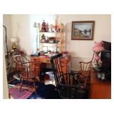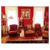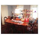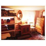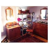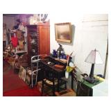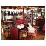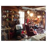 ANOTHER GREAT SALE!! This house is ‘chock a block’ full of fine custom furnishings, antiques and collectibles! Items include a wonderful pair of feather light sewing machines and others. A leather chair and ottoman, sofa several antique tables and occasional chairs, wing back chairs, empire furniture, game table, gun cabinet, oriental rugs, drop front desk, Victorian piano lamp, vintage doll collection, antique clocks, maple dining set with 10 chairs and a server, tea carts, china cabinet, steamer trunks, a pump organ, and craft supplies. Vintage toys, child’s desk and rocker, fishing gear, 4-piece maple bedroom suite (Full bed, tall chest, dresser) Canopy bed, large quantity of linens, basket collection, flat screen TV’s, jewelry, kitchen and cookware, crocks, books, cameras. Large workshop with hand and power tools and much, much more! |
