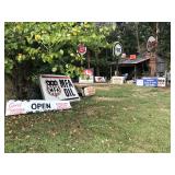 Crown Royal Sign — Nail Keg — Blue Mason Jars — Butter Molds — Lard Buckets — Cheese Boxes — Red Wagon — Well Buckets — Milk Cans — Remington Ammunition Display — Gas Cans — Popcorn Machine — Grill And Smoker — Oak Mantle — Murray Bike — Hobart Meat Saw — Bostitch Nailer — Paint Sprayer — Levels — Air Compressor Squirrel Fan — Husqvarna Weed Eater — Toledo Scale — Water Keg — Uniroyal Sign Clock — Glass Water Jug — 24” Kettle No Crock — Railroad Jacks — ATV Sprayer — Husqvarna Chainsaws — Rigid 13” Planer — Lincoln Welder — Honda Pressure Washer — 12” Band Saw — 10” Band Saw — Ice Box — 25 Gallon 4hp Craftsman Air Compressor — Terranium — Can Hooks — Cub Cadet RT65 Tiller — Dasher — 50+ Tonka Toys — Vintage Folding Chairs — Camel Back Trunk — Bird Cage — Cast Iron Skillets — Wood Clothes Pins — Coca Cola Chest — Old License Plates — Gas Powered Log Splitter — Aluminum Ladders — Cherry Picker — Hydraulic Cherry Picker — John Deere Grass Land Drill — 16 ft Metal Trailer — Chisel Plow — Large Stewarts Cookie Jar w/ Lid — Barrel Pickle Jars, 1 and 2 Gallon — Toms Peanut Butter Cookie Jar — Several Jars of Marbles — Oak Split Baskets — Western Auto Stone Sign on Pole — Sanford and Sons Salvage Sign — MFA Oil Sign — 2-Sided Goodyear Store Display Stand Sign — Late 1700s Primitive Cabinet with Letter Slot Top — Primitive Early Church Pew — Christmas 3 ft Blow Molds: Mickey and Minnie Mouse, Winnie The Pooh — Metal Ammo Boxes, Several Sizes — Old Store Cheese Cutter — Log Hooks — Iron and Wood Block and Tackle Pulleys — Old Ford Flatbed Truck — Old GMC Flatbed Truck — Buggy Seat with Springs — Hot Blast Florence Wood Stove — Black Hawk Corn Sheller — Corn Sheller on Stand Box — Two #2 Dinner Bells — Hay/Wheat Sickles — Horse Collars — Metal Milk Cans — Cream Separator — Old Wringer Washing Machines — Vintage Black and Yellow Stop Sign — Square Enterprise Wood Cook Stove — Several Pieces of Metal Yard Art — Old Store Show Cases — Store Counter Paper Cutters — Toledo Store Scales — Lots of Blue Fruit Jars — Wood Boxes — Several Lamp Chimneys — Well Buckets — Iron Cobblers Stool — Wood Cheese Boxes — Wood Buckets — “Big Red” Red Wagon — #8 Iron Kettle — Old Fairbanks Platform Table Scales — Colonial Door Push — Barqs Root Beer Thermometer — Purnells Pride Clock — Metal Oil Cans — Old Metal Water Cans — Remington Shell Box — Folding 3-Wheel Trike — Pitcher Well Pumps — Old Lanterns — Vintage Coffee Cans — Oil Lamps — Square Wash Tub — Carl Perkins Photographs — Stuffed and Mounted Bob Cat — Large Wood Ship — Old Iron Coffee Grinder — 2-Gallon Whiskey Jug — 1 Handle Brown Crock Stamped “Old Scruggs Pittsburg”
