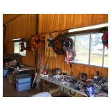 Living room and bedroom furniture; lamps; occasional tables Dining room table with 4 chairs; large office desk and a second desk with hutch; leather recliners Refrigerator and upright freezer; kitchen dishes; pots and pans, including Keurig; decorative tea pots and roosters Lovely patio set; huge barbeque smoker; metal trash cans; bird feeders; bird bath; gardening tools; plants Men’s and women’s clothes; jackets Ladders; a set of 15 lockers; dog kennels; doggie gates; lots of tools; air compressor; shop vacuum Hustler Zero Turn riding mower; 1950s Ford tractor with brush hog and grader; Phantom Scooter; other items related to health Vintage custom Buna Allen saddle; saddle bags; tack 50 “ flat screen tv; over 150 religious books and lots of cookbooks Firewood File cabinets Seasonal decorations Linens; office supplies So much more! Well worth the trip! Hope to see you there!