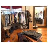 Mens Clothing: One of the best men’s closets we’ve had this year! A G-R-E-A-T assortment of guys clothing.. a variety of daring leather leather outfits AND accessories for the aficionados to all the Polo and Ralph Lauren one could stand! Other various brands include Chaps, Tommy Hilfiger, Avanti, Dockers, Colours, LandsEnd, Gap and Faconnable. (sizes vary M/L).. Shoes by Nike, KSwiss, Clark’s, Cole Haan, Bally, Frederico Leone and Polo. Boots by Justin, Dr. Martens, Gore-Tex and Alpine (sizes 9.5ish).. come check them out!
